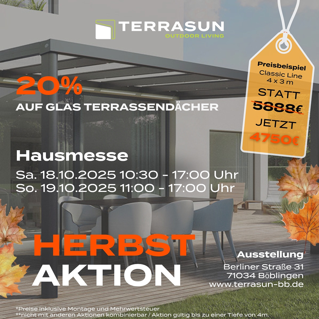 Unsere Überdachungen sind jederzeit mit Markisen und zu einem Kaltwintergarten erweiterbar.
